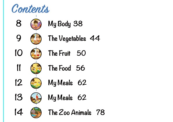 The big picture book of 29 themed stories with detailed lesson plans include : reading instructions, gestures, movements, discussion questions with sample answers ,act out and role play activities (drama club),values and ethics ,art and craft activities.